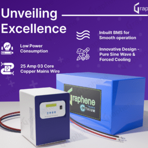 GRAPHENE 12 Volt 200AH Smart Lithium Battery, 1250VA PWM Pure Sine Wave Solar Hybrid Inverter ,With Long Life Up to 20 Years, comes with 5 Years Warranty
