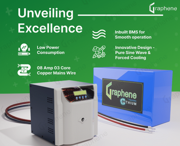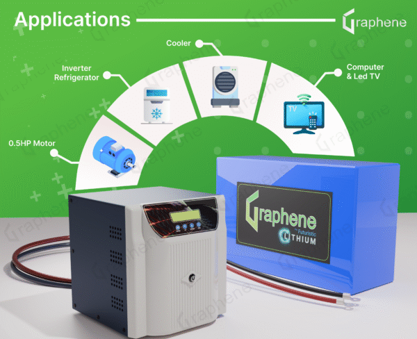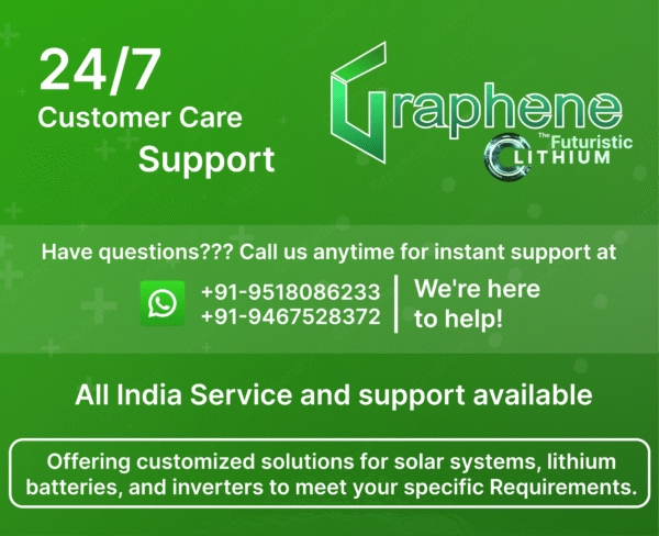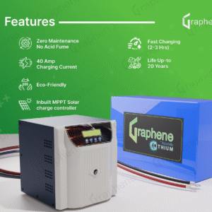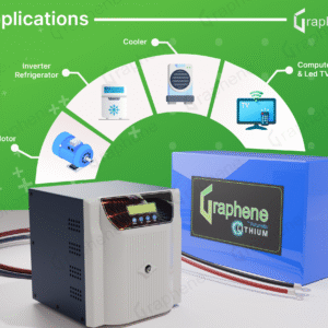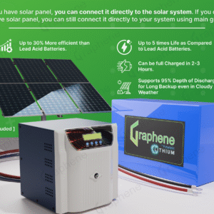 Be the first to review “GRAPHENE 12 Volt 100AH Smart Lithium Battery, 1100VA MPPT Pure Sine Wave Solar Hybrid Inverter ,With Long Life Up to 20 Years, comes with 5 Years Warranty”