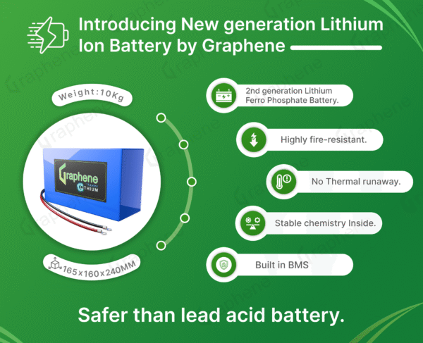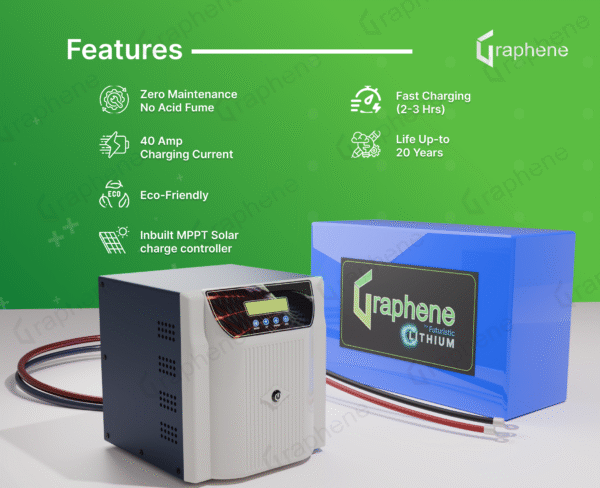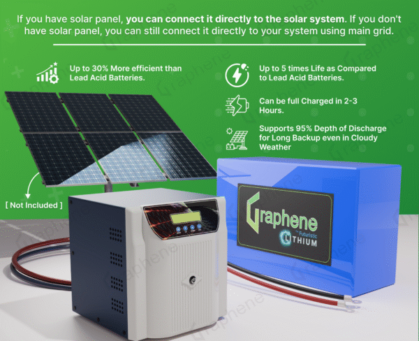 GRAPHENE 12 Volt 100AH Smart Lithium Battery, 1100VA MPPT Pure Sine Wave Solar Hybrid Inverter ,With Long Life Up to 20 Years, comes with 5 Years Warranty