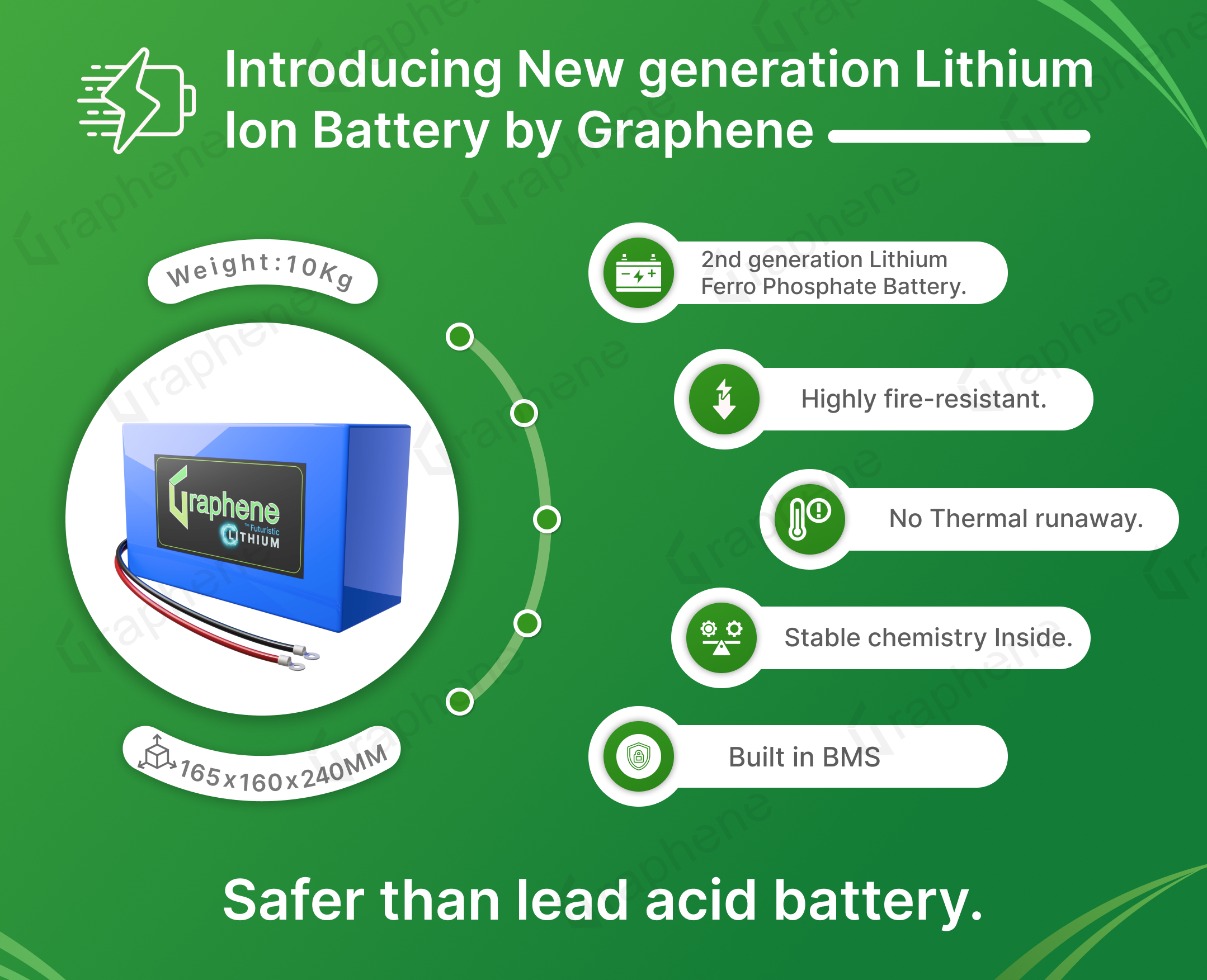 Comes with a built-in Battery Management System (BMS) that protects against overheating, overcharging, and short circuits.