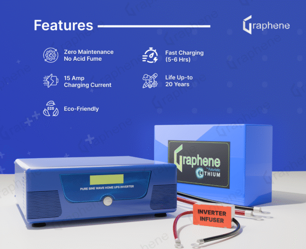 इसमें इंटीग्रेटेड बैटरी मैनेजमेंट सिस्टम (BMS) और 1500VA स्मार्ट प्योर साइन वेव इन्वर्टर शामिल है, जो बिना फैन की आवाज़ के पूरी तरह से शांत संचालन प्रदान करता है।