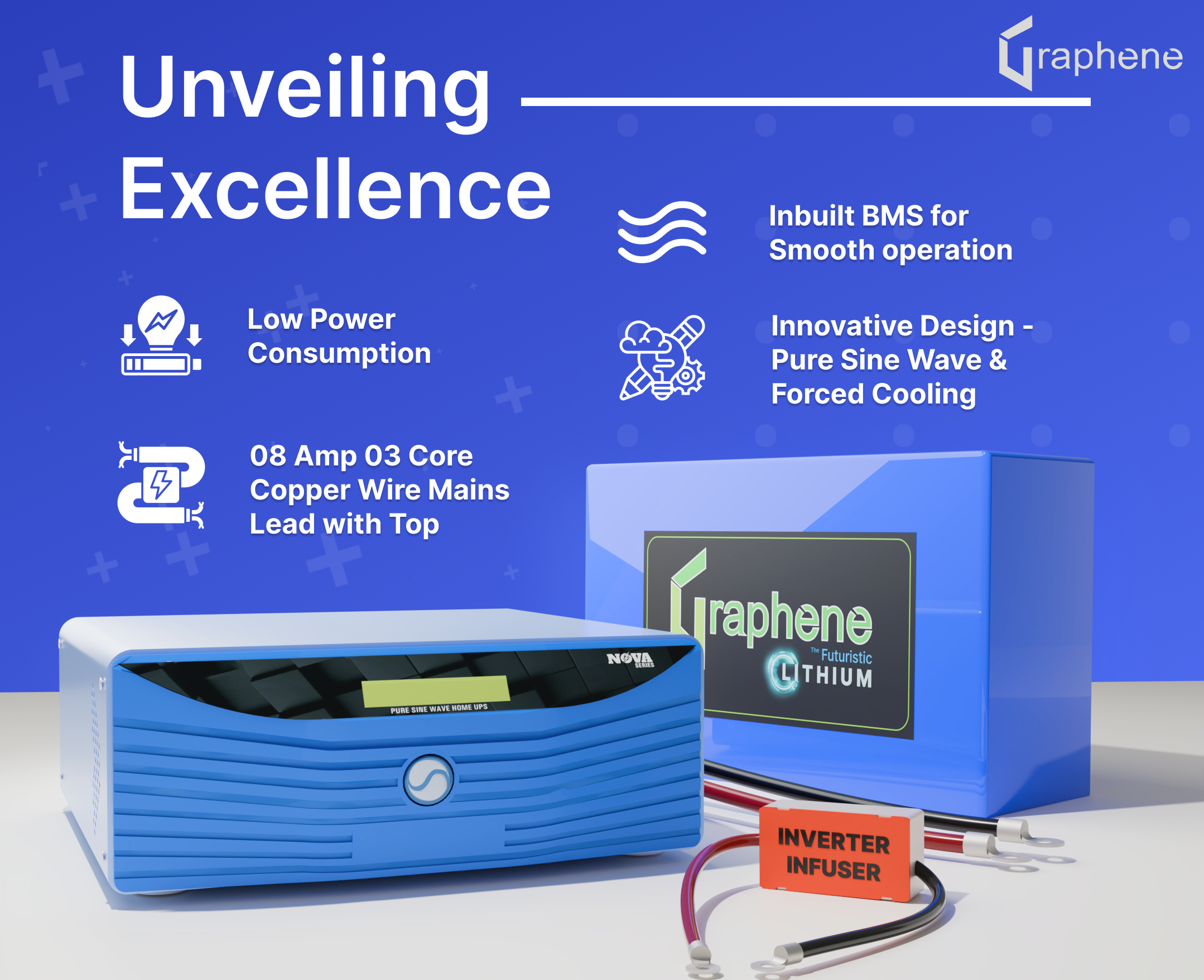 इसमें इंटीग्रेटेड बैटरी मैनेजमेंट सिस्टम (BMS) और 1500VA स्मार्ट प्योर साइन वेव इन्वर्टर शामिल है, जो बिना फैन की आवाज़ के पूरी तरह से शांत संचालन प्रदान करता है।