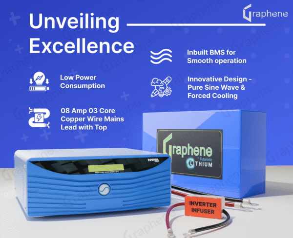 इसमें इंटीग्रेटेड बैटरी मैनेजमेंट सिस्टम (BMS) और 1500VA स्मार्ट प्योर साइन वेव इन्वर्टर शामिल है, जो बिना फैन की आवाज़ के पूरी तरह शांत संचालन प्रदान करता है।
