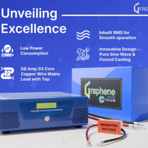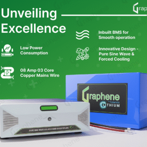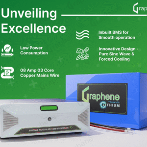 GRAPHENE 12 Volt 200AH Smart Lithium Battery, 1250VA PWM Pure Sine Wave Solar Hybrid Inverter ,With Long Life Up to 20 Years, comes with 5 Years Warranty